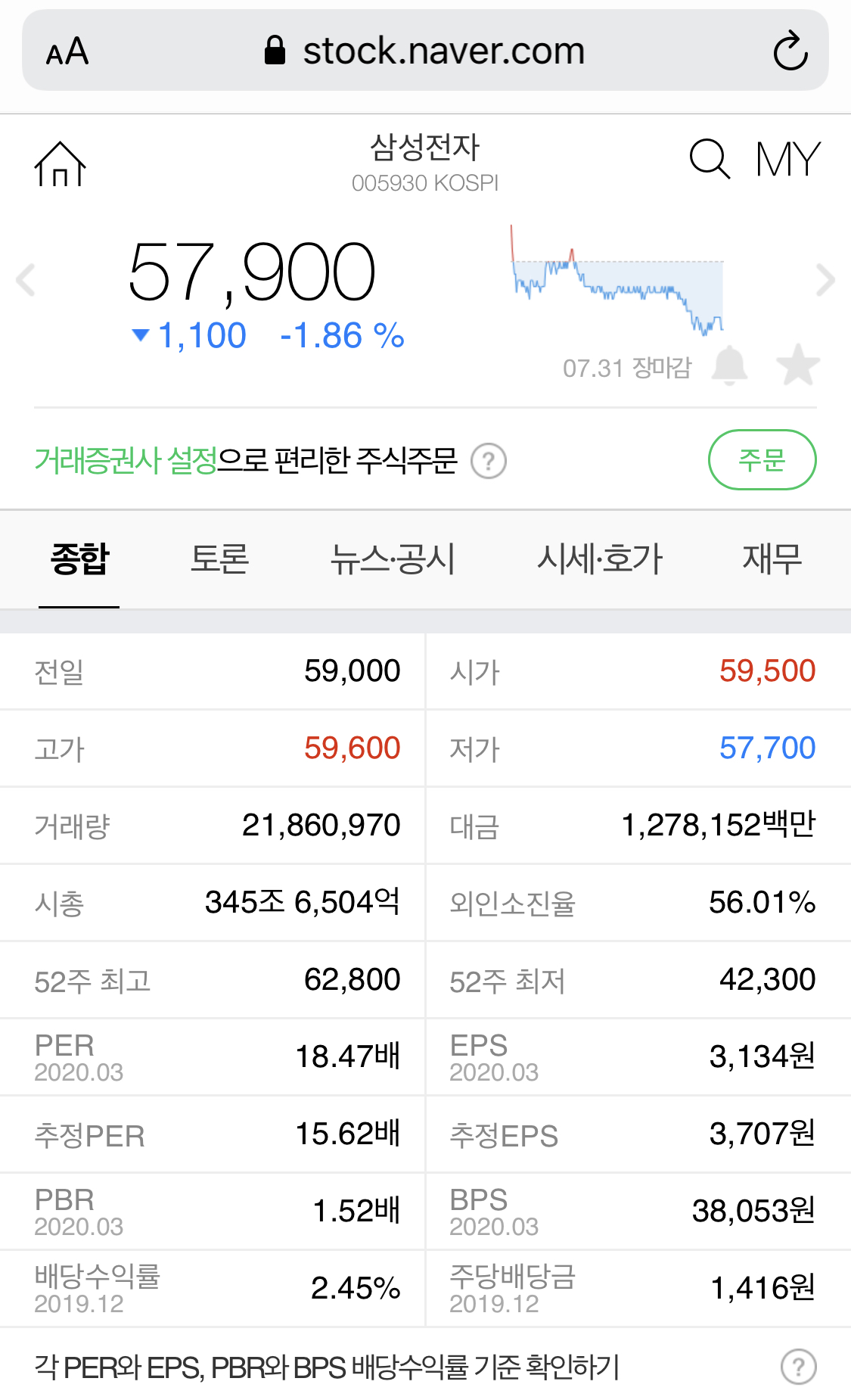 접근성이 좋아서 들어가게 되는 사이트인데요. 그냥 종목이름 검색만 해도 상위에 뜨니까요 ~