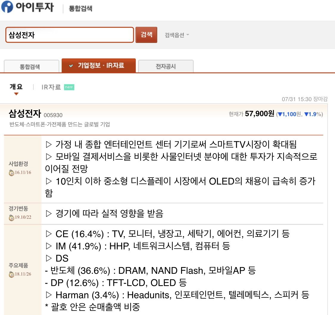 전자공시시스템(DART)에 들어가서 사업보고서를 따로 볼 필요 없이 "기업정보, IR자료"를 들어가면